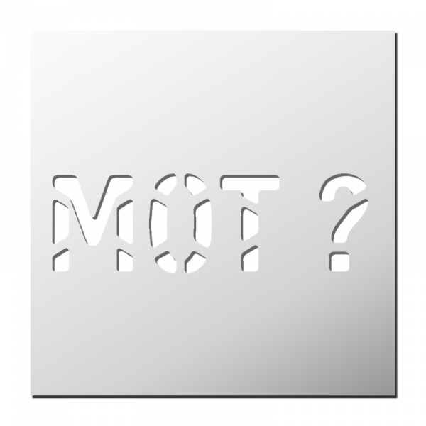 Pochoir Mot ? plastique réutilisable, autocollant, autocollant repositionnable ou papier. Pochoir utilisable sur tous supports (mur, tissu, toile, bois, métal, verre… ²).