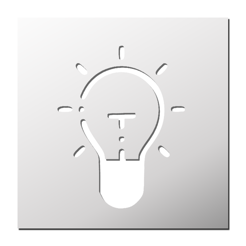 Pochoir Ampoule plastique réutilisable, autocollant, autocollant repositionnable ou papier. Pochoir utilisable sur tous supports (mur, tissu, toile, bois, métal, verre… ²).