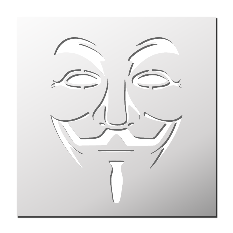Pochoir Anonymous plastique réutilisable, autocollant, autocollant repositionnable ou papier. Pochoir utilisable sur tous supports (mur, tissu, toile, bois, métal, verre… ²).