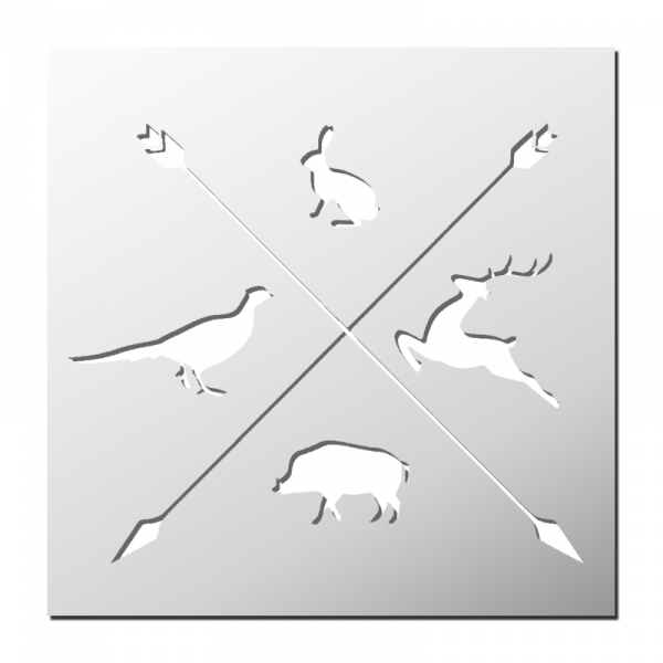 Pochoir Chasse plastique réutilisable, autocollant, autocollant repositionnable ou papier. Pochoir utilisable sur tous supports (mur, tissu, toile, bois, métal, verre… ²).
