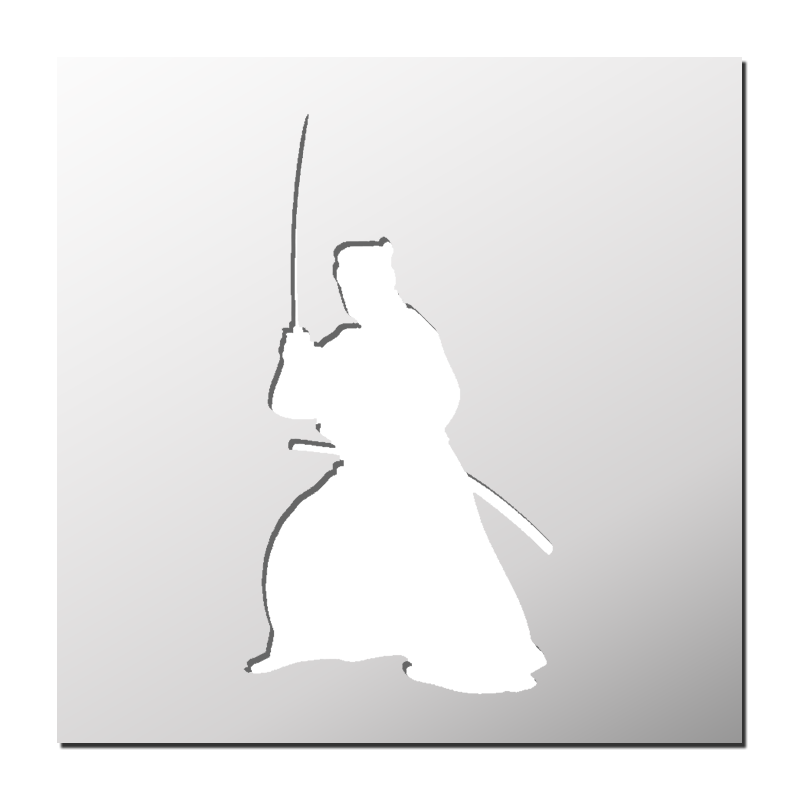 Pochoir Samouraï plastique réutilisable, autocollant, autocollant repositionnable ou papier. Pochoir utilisable sur tous supports (mur, tissu, toile, bois, métal, verre… ²).