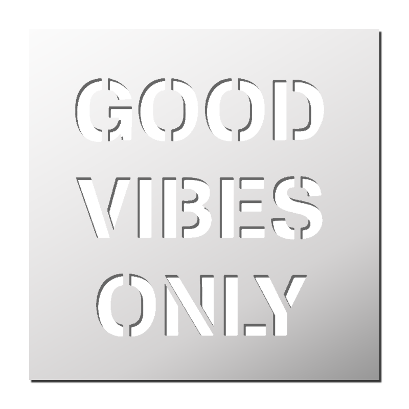Pochoir Good Vibes Only plastique réutilisable, autocollant, autocollant repositionnable ou papier. Pochoir utilisable sur tous supports (mur, tissu, toile, bois, métal, verre… ²).