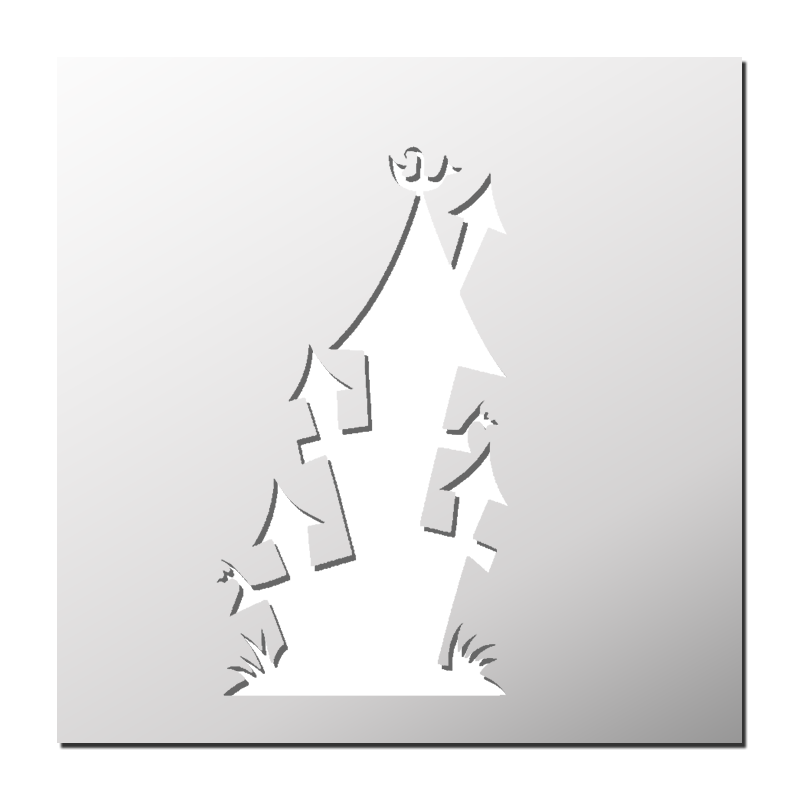 Pochoir Maison Hantée plastique réutilisable, autocollant, autocollant repositionnable ou papier. Pochoir utilisable sur tous supports (mur, tissu, toile, bois, métal, verre… ²).