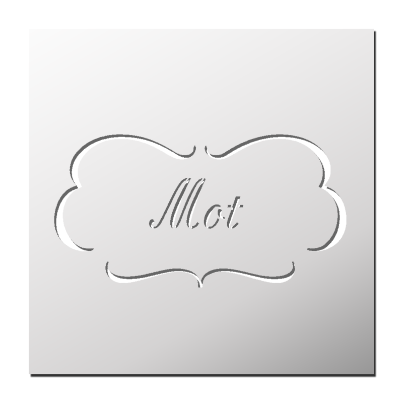 Pochoir Mot plastique réutilisable, autocollant, autocollant repositionnable ou papier. Pochoir utilisable sur tous supports (mur, tissu, toile, bois, métal, verre… ²).