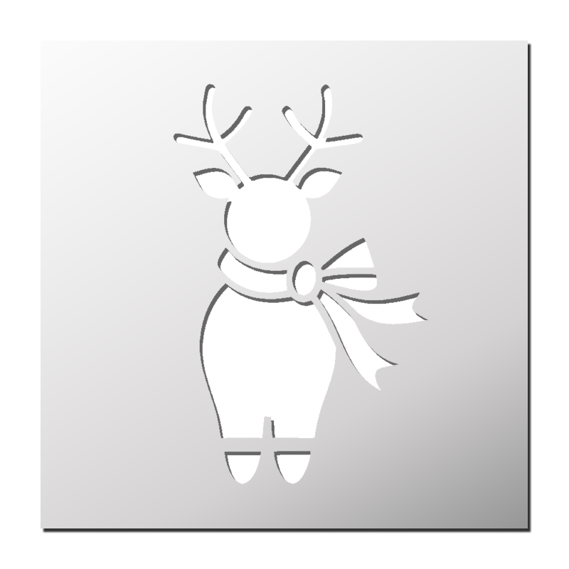 Pochoir Renne Père Noël plastique réutilisable, autocollant, autocollant repositionnable ou papier. Pochoir utilisable sur tous supports (mur, tissu, toile, bois, métal, verre… ²).