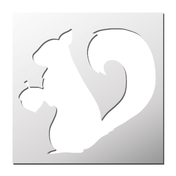 Pochoir Ecureuil plastique réutilisable, autocollant, autocollant repositionnable ou papier. Pochoir utilisable sur tous supports (mur, tissu, toile, bois, métal, verre… ²).
