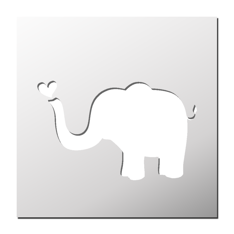 Pochoir Elephant Coeur plastique réutilisable, autocollant, autocollant repositionnable ou papier. Pochoir utilisable sur tous supports (mur, tissu, toile, bois, métal, verre… ²).