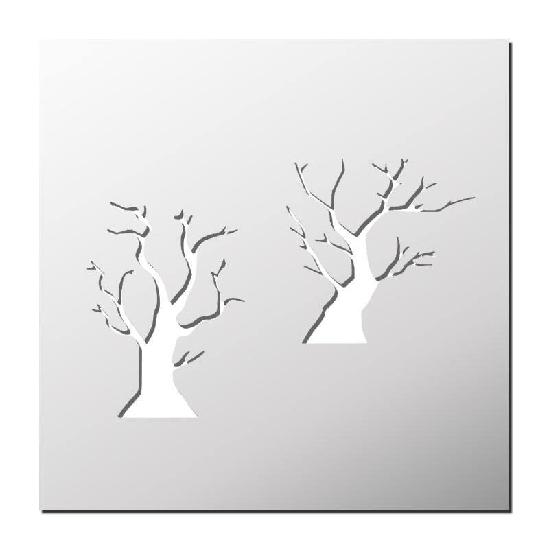 Pochoir Forêt hantée plastique réutilisable, autocollant, autocollant repositionnable ou papier. Pochoir utilisable sur tous supports (mur, tissu, toile, bois, métal, verre… ²).