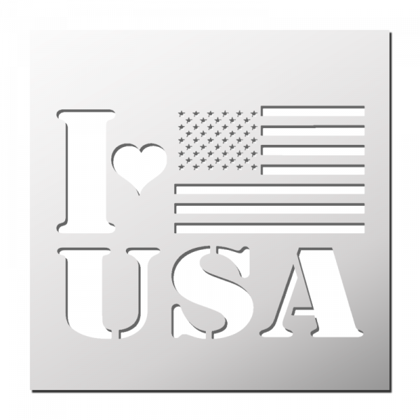 Pochoir I LOVE USA plastique réutilisable, autocollant, autocollant repositionnable ou papier. Pochoir utilisable sur tous supports (mur, tissu, toile, bois, métal, verre… ²).