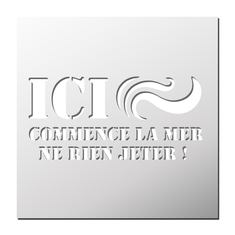 Pochoir Ici commence la Mer Ne rien jeter ! plastique réutilisable, autocollant, autocollant repositionnable ou papier. Pochoir utilisable sur tous supports (mur, tissu, toile, bois, métal, verre… ²).