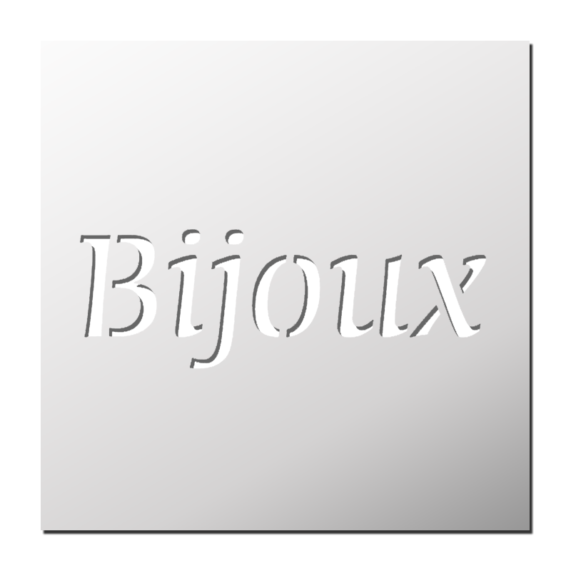 Pochoir Bijoux plastique réutilisable, autocollant, autocollant repositionnable ou papier. Pochoir utilisable sur tous supports (mur, tissu, toile, bois, métal, verre… ²).