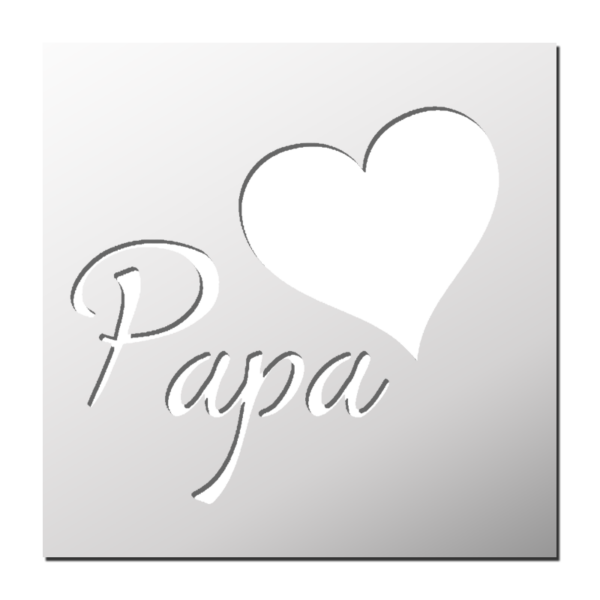 Pochoir Papa + Coeur plastique réutilisable, autocollant, autocollant repositionnable ou papier. Pochoir utilisable sur tous supports (mur, tissu, toile, bois, métal, verre… ²).