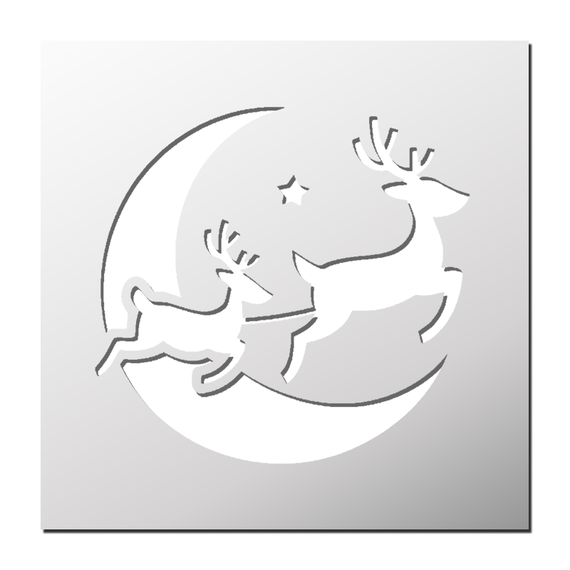 Pochoir Renne Père Noël plastique réutilisable, autocollant, autocollant repositionnable ou papier. Pochoir utilisable sur tous supports (mur, tissu, toile, bois, métal, verre… ²).