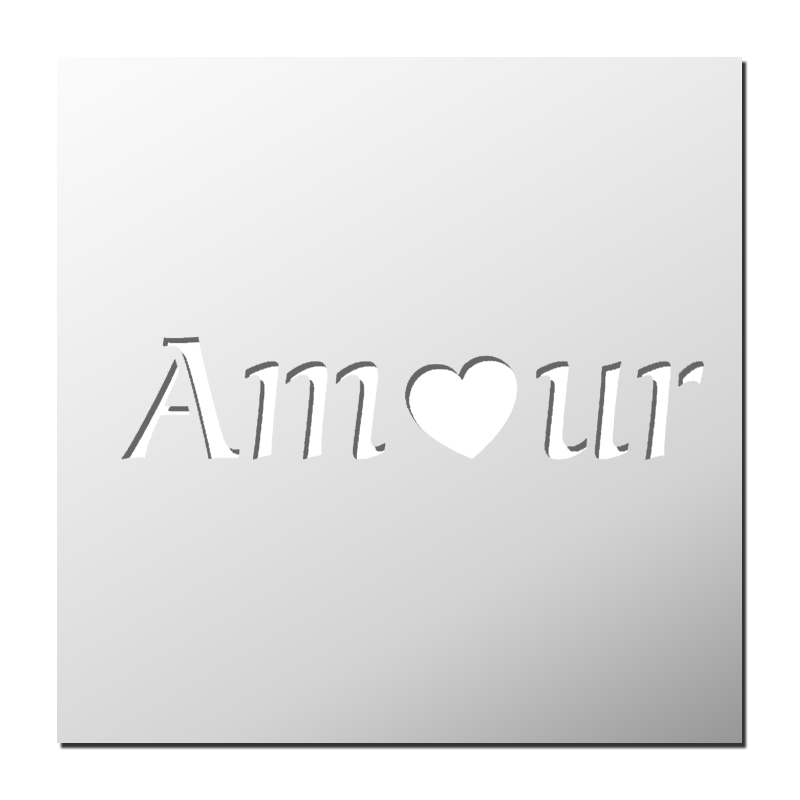 Pochoir Amour plastique réutilisable, autocollant, autocollant repositionnable ou papier. Pochoir utilisable sur tous supports (mur, tissu, toile, bois, métal, verre… ²).