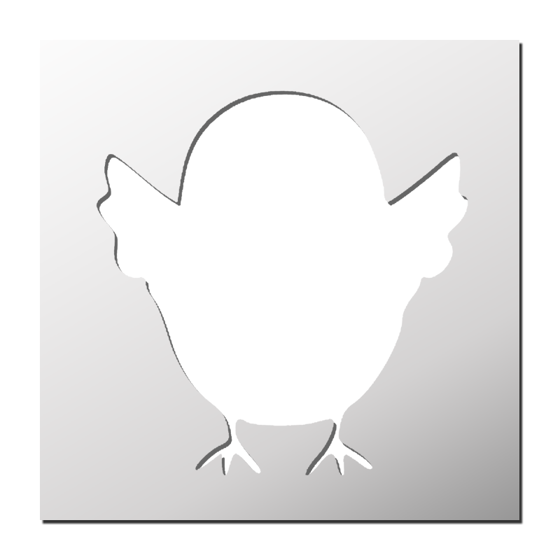 Pochoir Poussin plastique réutilisable, autocollant, autocollant repositionnable ou papier. Pochoir utilisable sur tous supports (mur, tissu, toile, bois, métal, verre… ²).