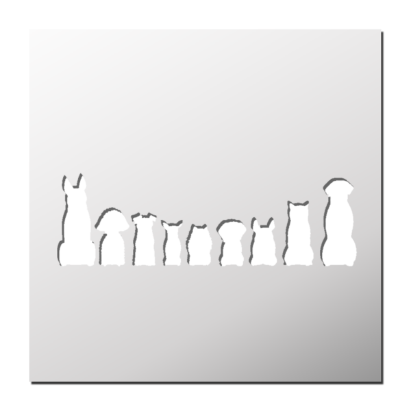 Pochoir Chiens plastique réutilisable, autocollant, autocollant repositionnable ou papier. Pochoir utilisable sur tous supports (mur, tissu, toile, bois, métal, verre… ²).
