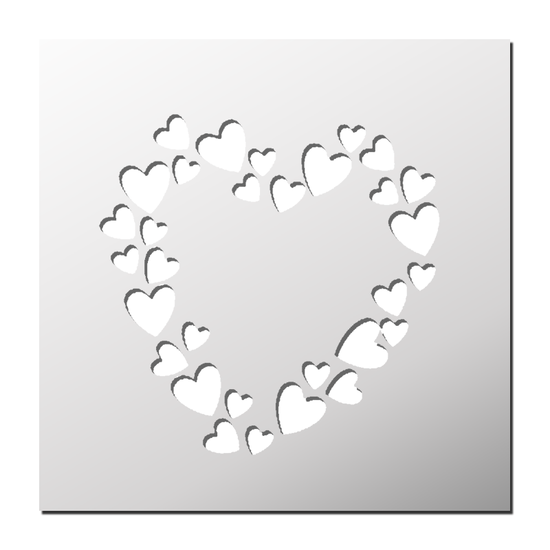 Pochoir Coeurs plastique réutilisable, autocollant, autocollant repositionnable ou papier. Pochoir utilisable sur tous supports (mur, tissu, toile, bois, métal, verre… ²).