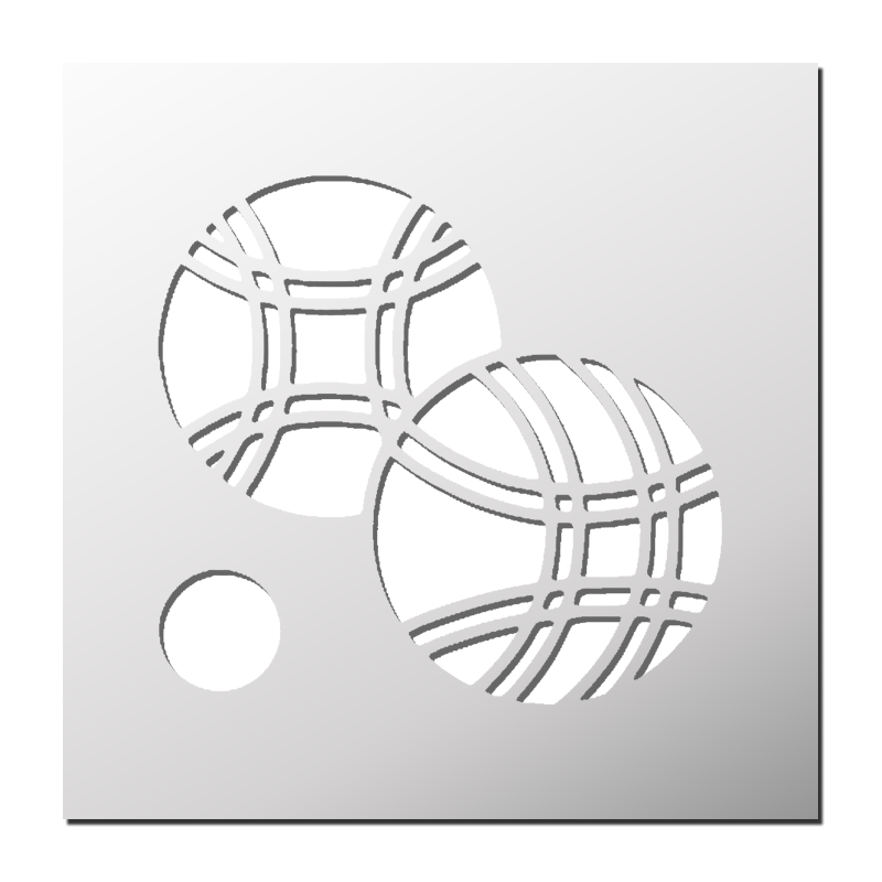 Pochoir Pétanque plastique réutilisable, autocollant, autocollant repositionnable ou papier. Pochoir utilisable sur tous supports (mur, tissu, toile, bois, métal, verre… ²).