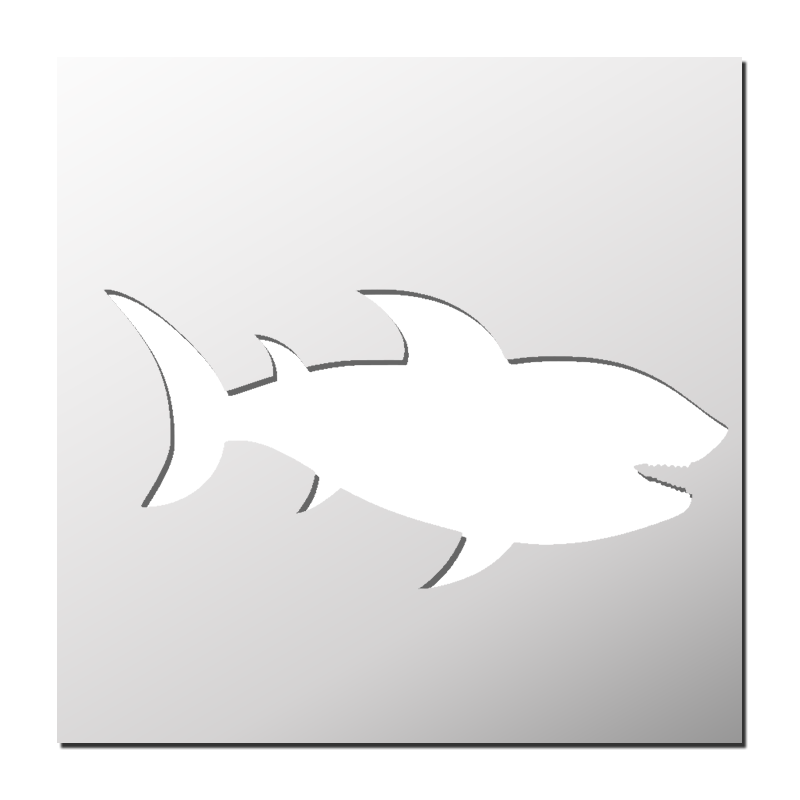Pochoir Requin plastique réutilisable, autocollant, autocollant repositionnable ou papier. Pochoir utilisable sur tous supports (mur, tissu, toile, bois, métal, verre… ²).