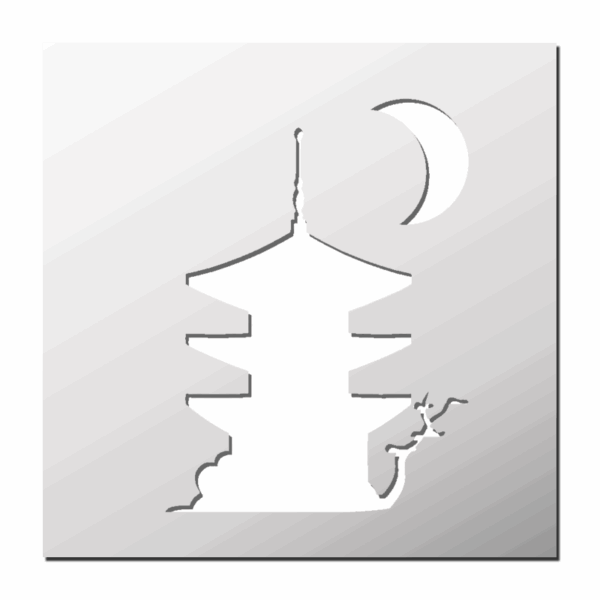 Pochoir Temple Japon plastique réutilisable, autocollant, autocollant repositionnable ou papier. Pochoir utilisable sur tous supports (mur, tissu, toile, bois, métal, verre… ²).