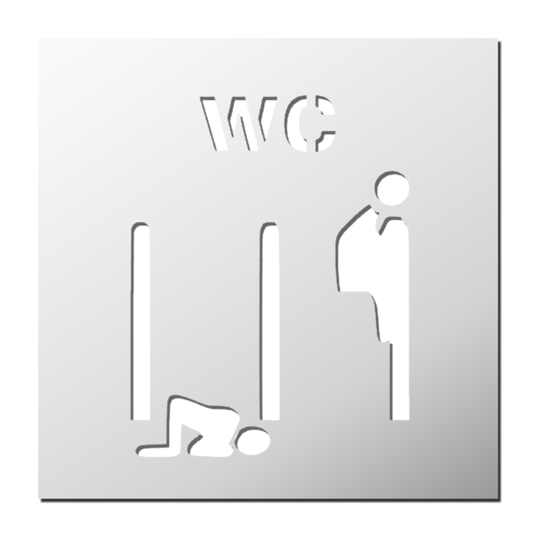 Pochoir WC plastique réutilisable, autocollant ou en papier pour tous supports (mur, tissu, toile, bois, verre… ²).