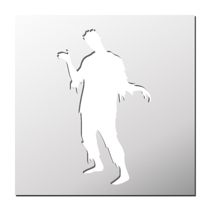 Pochoir Zombie plastique réutilisable, autocollant, autocollant repositionnable ou papier. Pochoir utilisable sur tous supports (mur, tissu, toile, bois, métal, verre… ²).